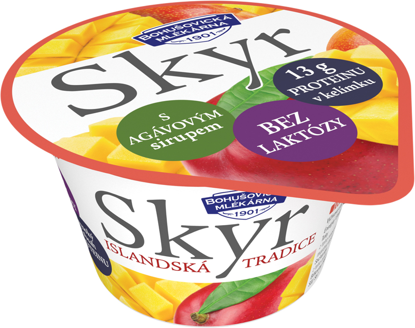 Bezlaktózový Skyr je moderní obměnou klasických variant s obsahem laktózy a reaguje na rostoucí zájem spotřebitelů o tuto alternativu. Díky tomu si tento tradiční islandský výrobek mohou vychutnat i lidé s laktózovou intolerancí nebo citlivějším trávením. Navíc Bohušovická mlékárna přichází s hned dvěma variantami – Natur bez příchuti a z období limitovaných edic oblíbené Mango, tentokrát slazené agávovým sirupem.